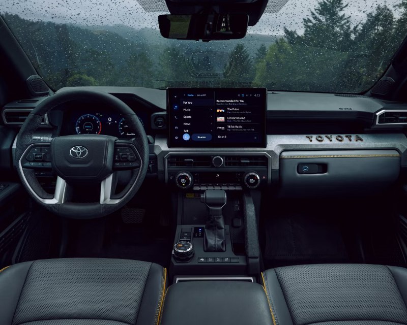 Inside, the transformation is equally impressive. The cabin combines rugged utility with modern luxury, featuring soft-touch materials, durable trim, and intuitive ergonomics. The centrepiece is Toyota’s latest infotainment interface, anchored by a standard 8-inch or available 14-inch touchscreen display. It supports wireless Apple CarPlay and Android Auto, with the ability to receive over-the-air updates. A 12.3-inch digital instrument cluster provides customizable displays for speed, navigation, and vehicle diagnostics. The hybrid models include real-time energy flow graphics, showing how the engine and motor work together for efficiency.